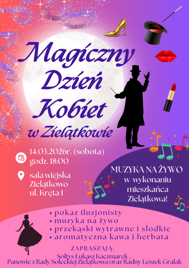 Już 𝟭𝟰 𝗺𝗮𝗿𝗰𝗮 𝟮𝟬𝟮𝟲 𝗿. (𝘀𝗼𝗯𝗼𝘁𝗮) o 𝟭𝟴:𝟬𝟬 spotykamy się w 𝗦𝗮𝗹𝗶 𝗪𝗶𝗲𝗷𝘀𝗸𝗶𝗲𝗷 𝘄 𝗭𝗶𝗲𝗹𝗮̨𝘁𝗸𝗼𝘄𝗶𝗲, 𝘂𝗹. 𝗞𝗿𝗲̨𝘁𝗮 𝟭, aby wspólnie świętować Wasz dzień w magicznej atmosferze.