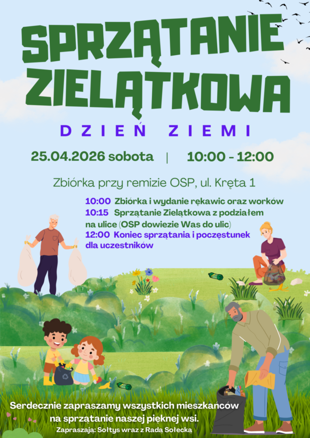 Zapraszamy wszystkich mieszkańców – dużych i małych – do wspólnego sprzątania Zielątkowa!